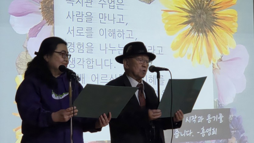 올해의 교육 운영일정을 공유하고, 수강생 중 가장 고령의 어르신(92세)과 60세 수강생 어르신의 다짐을 발표하는 시간을 가져 더욱 뜻깊은 시간이 마련되었습니다.